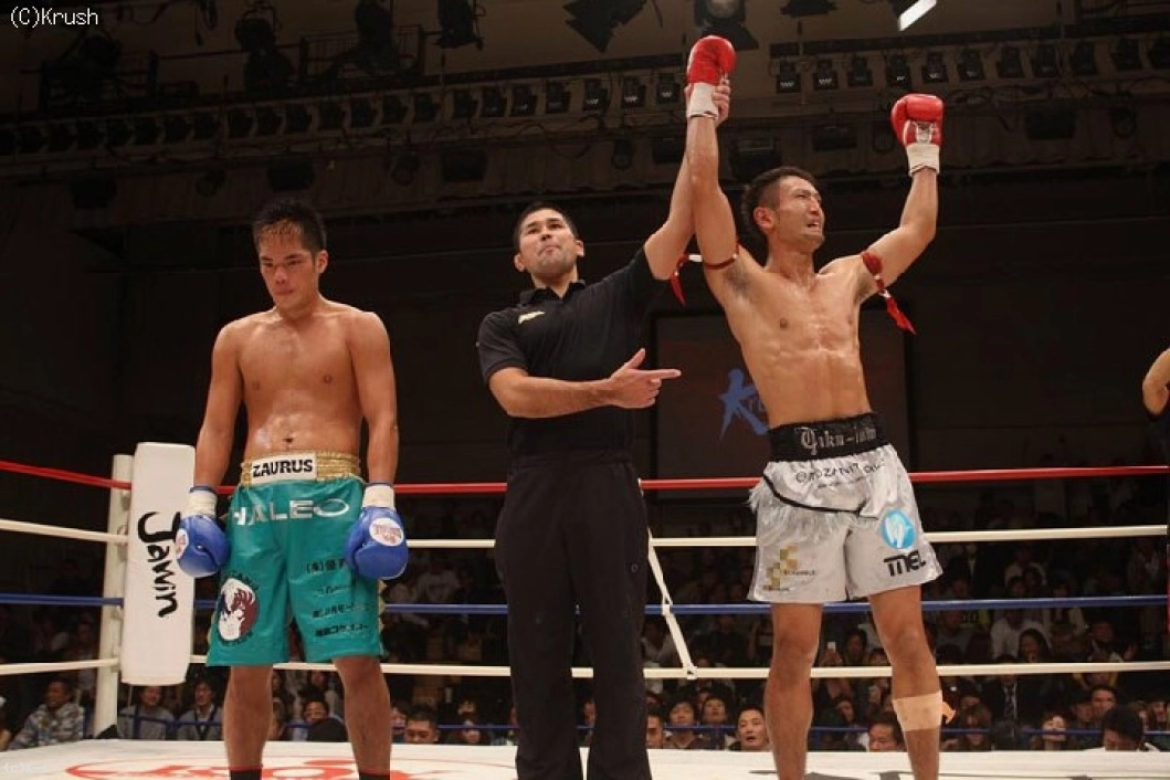 延長R、一気にラッシュを仕掛けた阿佐美。守屋はそれを耐え凌ぎ、右ローで徐々に阿佐美の動きを止める。前に出続ける阿佐美。守屋がそこに右ローと左ミドルを蹴るという展開で試合終了となった。判定は2‐1と割れたものの、守屋が勝利。王者・城戸への挑戦権を手にした。