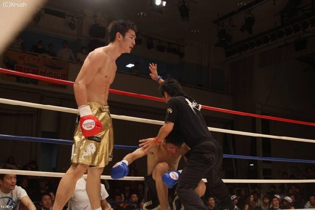 3R、お互いにパンチからヒザ蹴り。近藤が松倉を下がらせてヒザ蹴りにつなげる。松倉はジャブを突いて右ボディストレートと左フック。近藤はパンチからヒザ蹴り、そして飛びヒザ蹴り。松倉も飛びヒザ蹴りを返す。近藤がバックブローを打つと、松倉はヒザ蹴りを狙う近藤にパンチを狙う。判定は30-30、30-30、29-29と差がつかずにドロー。延長戦へともつれる。