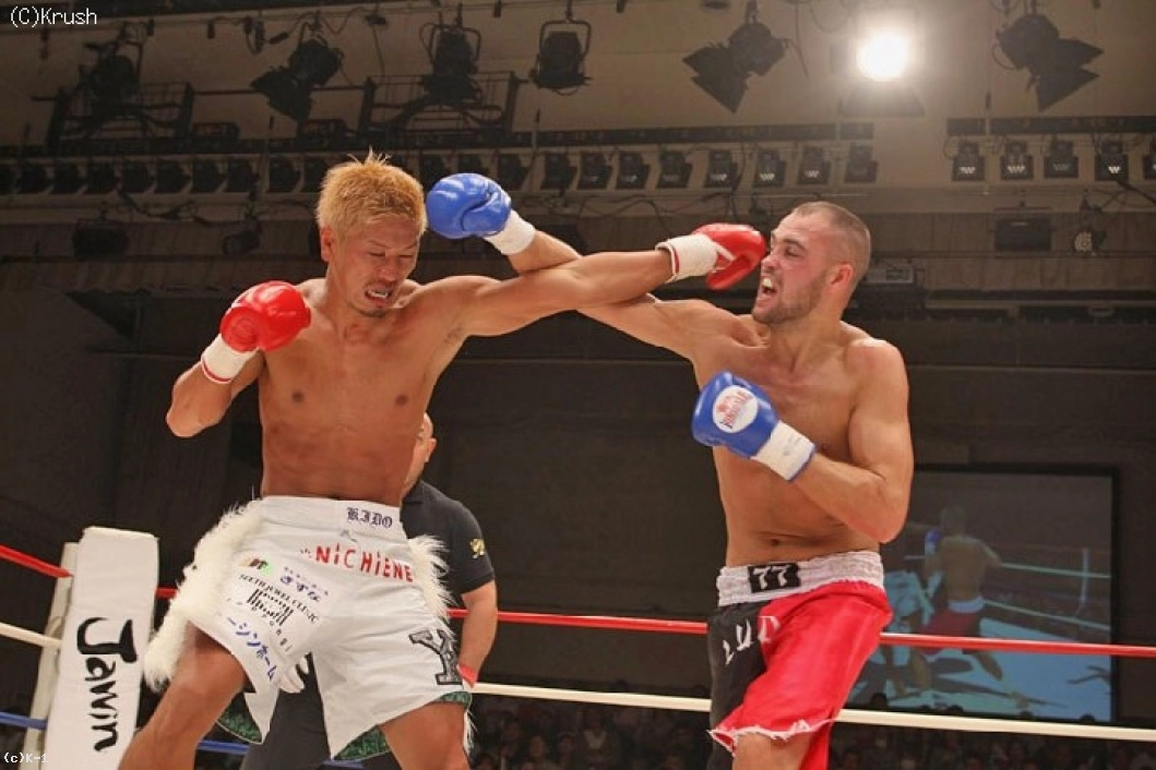 3R、ミラーがローを蹴って前に出ると、そこに城戸がカウンターの右ストレート! この一発で城戸がダウンを奪う。立ち上がったミラーにサウスポーの城戸が左ハイ。ミラーも右ローから右ストレート、右ハイとインローで前に出る。しかし城戸はしっかりとミラーの攻撃をブロックして奥足ロー。これでミラーの足を止めて左ハイキックにつなげる。ミラーも城戸をパンチでロープまで下がらせるが、城戸はそこにヒザ蹴り、左ハイキックを狙う。KO勝利こそ逃したものの、2度のダウンを奪った城戸が判定でミラーを撃破した。