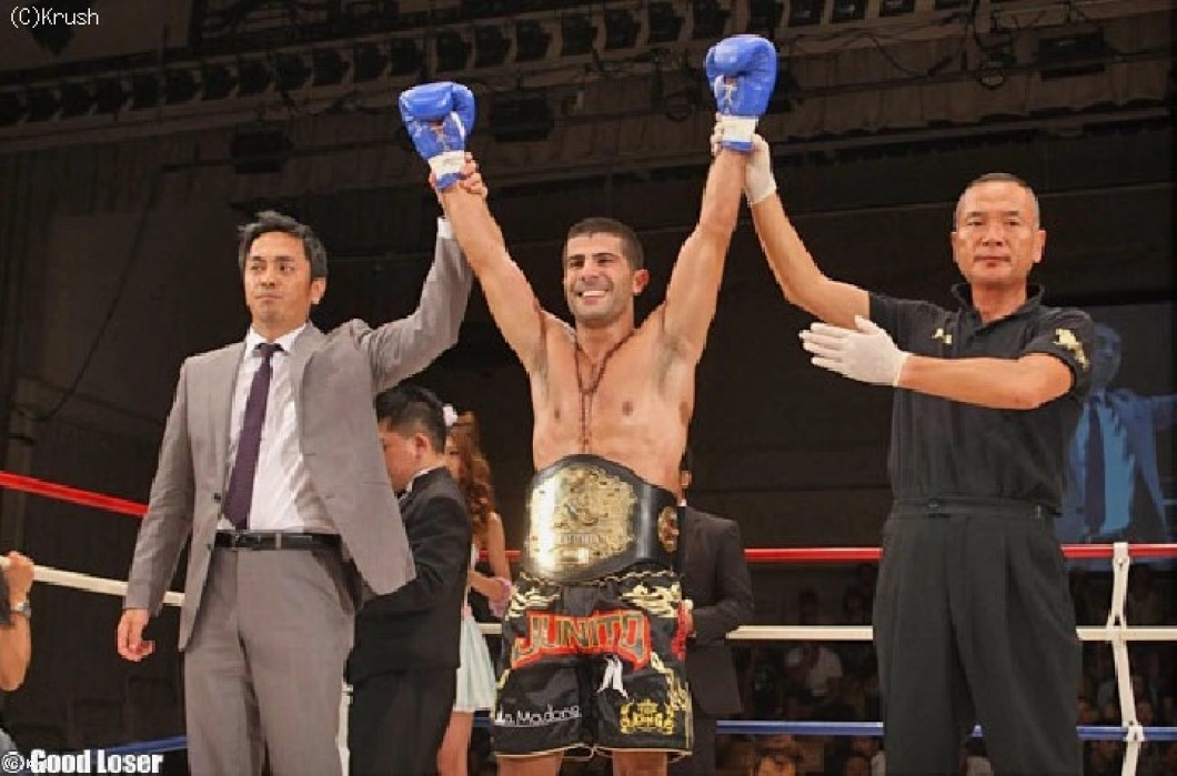 2R、アダマンドポウロスはインローと左ハイキック、そして右ローにつなげる。梶原はその右ローに右ストレートを伸ばす。アダマンドポウロスの右ローが梶原の左足をとらえ、会場からは悲鳴も起こる。梶原も右ストレートから左ボディにつなげるが、アダマンドポウロスも強烈な左ボディを返して、そこから左ハイキック! これが梶原の顔面を打ち抜いて、梶原がバッタリと倒れ、レフェリーが試合をストップ! アダマンドポウロスが梶原をマットに沈め、第2代Krush-63kg級王者となった。試合後、マイクを持ったアダマンドポウロスは「コンニチハ、アリガトウ!」と日本語で挨拶。王座獲得の喜びを爆発させた。