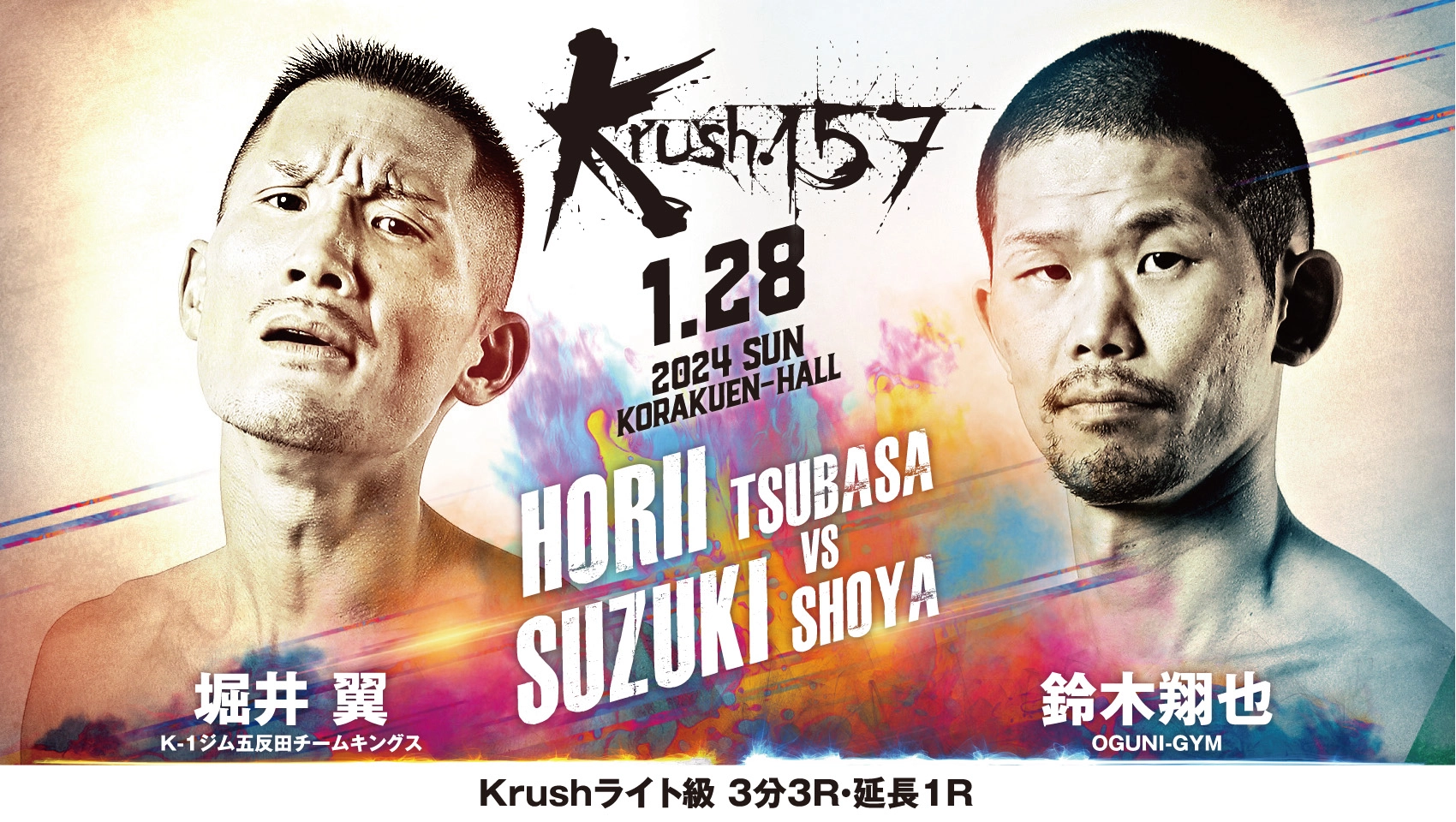 「Krush.157」1.28(日)後楽園 堀井翼vs鈴木翔也 コメント公開!「一方的に終わるからちゃんとチェックよろしく」(堀井)vs「今回は倒すだけの試合、逆転はもういいかな」(鈴木)