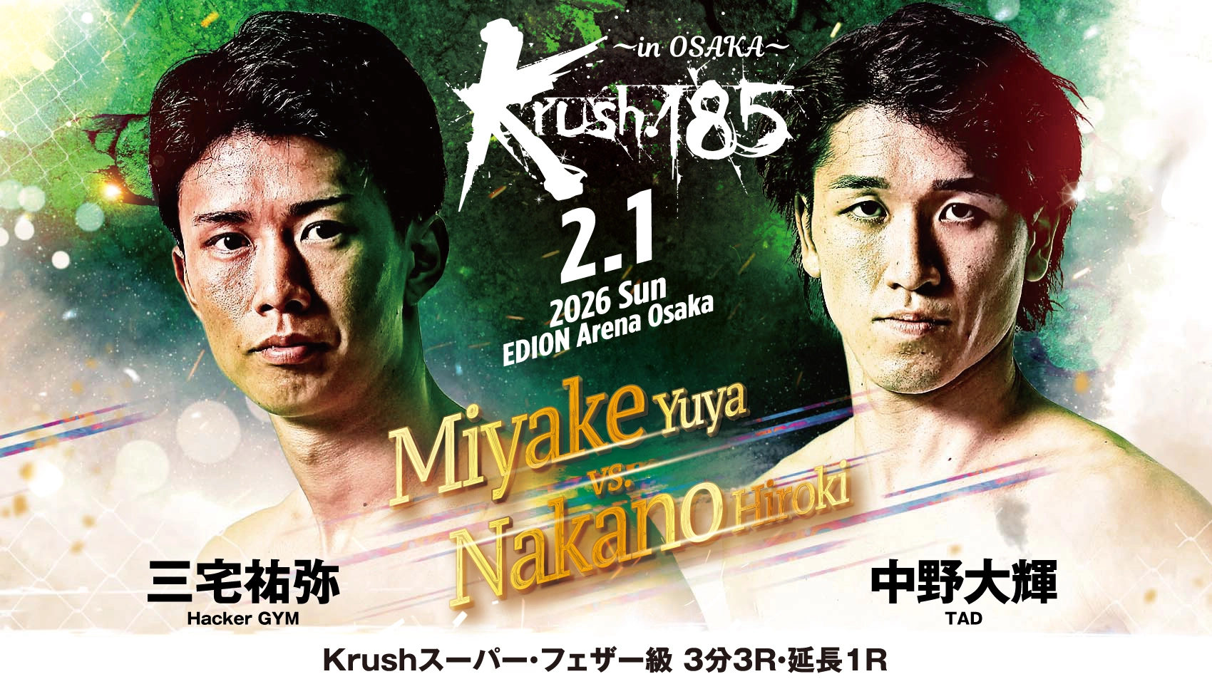 2月1日(日)エディオンアリーナ大阪(大阪府立体育会館第2競技場)にて開催される「Krush.185 ~in OSAKA~」の[第4試合/Krushスーパー・フェザー級/3分3R・延長1R]で対戦する三宅祐弥vs中野大輝のコメントを公開!