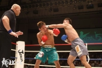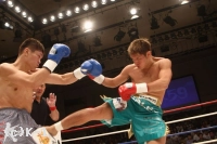 2R、藤田が阿佐美をロープに詰めてボディブローと右ロー。阿佐美も右ローを返して譲らない。圧力をかけて前に出る藤田。阿佐美は左フックとヒザ蹴りを返し、終了間際、右ストレートから返しの左フックでダウンを奪う。