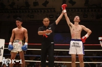 そして3R、ジャブ・前蹴りをタイミングよく当てる荒木が、左フックから右ストレートを打ち抜いてダウンを奪う。立ち上がったMITSURUもパンチで前に出ていくが、荒木も左フックを打ち返して応戦。1Rこそ劣勢だったものの、3Rにダウンを奪った荒木が逆転勝利した。