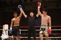 3R、ここまでのラウンドと違い、自分から手数を増やして前に出る松野。加藤も右ストレート・左フックで迎え撃つ。松野は右ストレート・ヒザ蹴りで前に出て、加藤は右ストレートから右フックを強振。最後までノンストップの打ち合いが続いたものの、試合はドローに終わった。