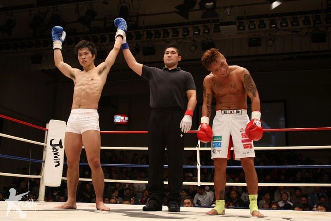 「(初めてのKrushの印象は?)会場が凄く盛り上がっていて、僕もそれに乗れた感じですね。(ルールの感想は?)僕は出された試合に出るだけなんで、とくに問題はないです。(ハードパンチャーの中澤選手に勝ったことについては?)いや、とくに相手は意識してなくて。僕にとってはただの1試合なんで。次にどんなカードを組んでもらえるか、凄く楽しみですね。(具体的に戦いたい選手はいますか?)まあ、べつにベルトは意識してないんですけど、ベルトを持ってる選手が強いなら、強い相手とドンドン試合をしたいですね。(次は強敵が現れると思うが?)また、練習するのが楽しみです。(来年もKrushに上がりたいですか?)呼ばれれば、僕はお願いしたいくらいです」