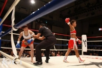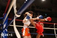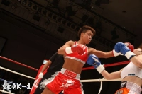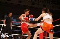 1R、ローを蹴ってプレッシャーをかけるKANA。狙い澄ました右ストレートでダウンを奪う。再開後、KANAは右フックを当てて右ハイキック、そこから連打をまとめて2度目のダウンを奪う。