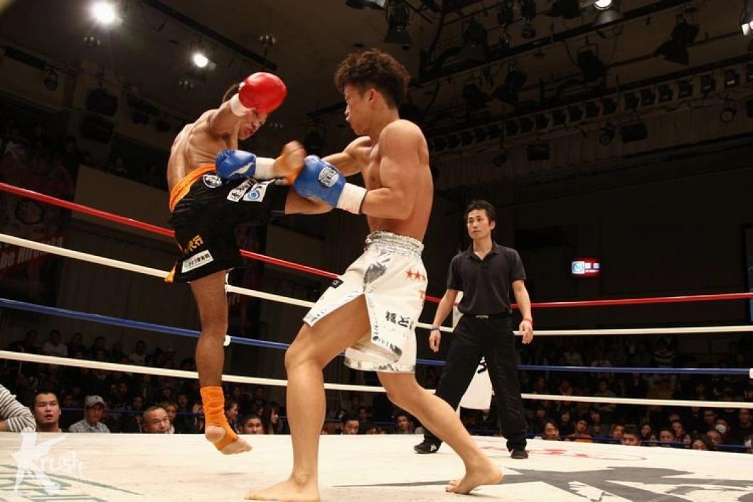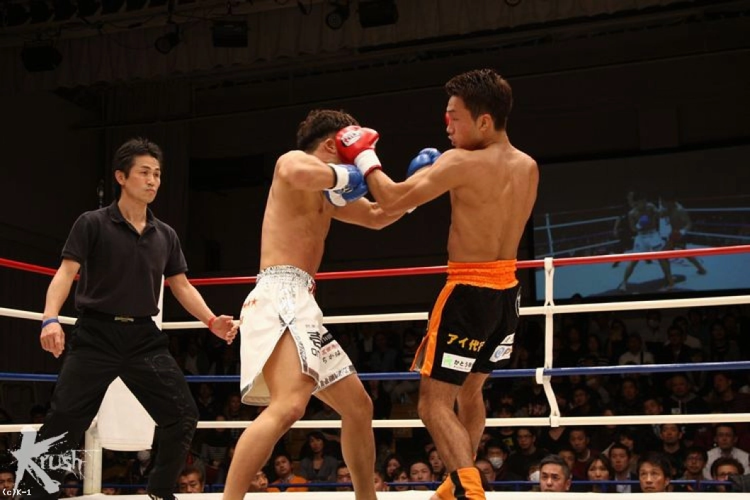 2R、神戸が右ミドル、大滝はそこに左フックで飛び込んでいく。ジャブを顔とボディに打ち分け、左フックまでつなげる神戸。ボディ打ちで大滝の動きを止めて、右ミドル・右ストレートを当てる。大滝は果敢に右ストレートから前に出ていくが、神戸は左フックと右アッパー。左ボディからパンチをまとめて、右ハイキックを狙う。