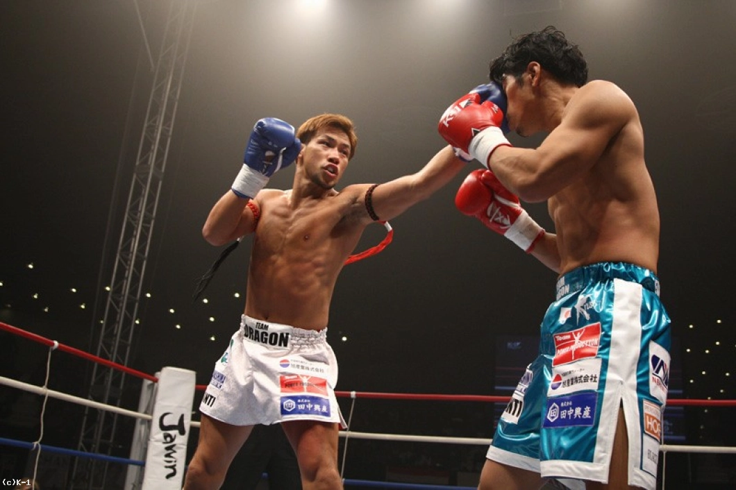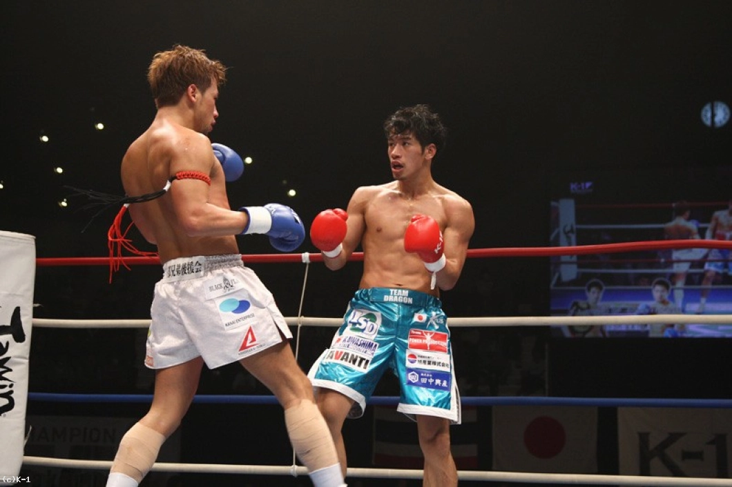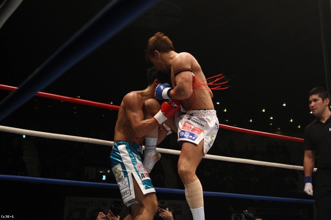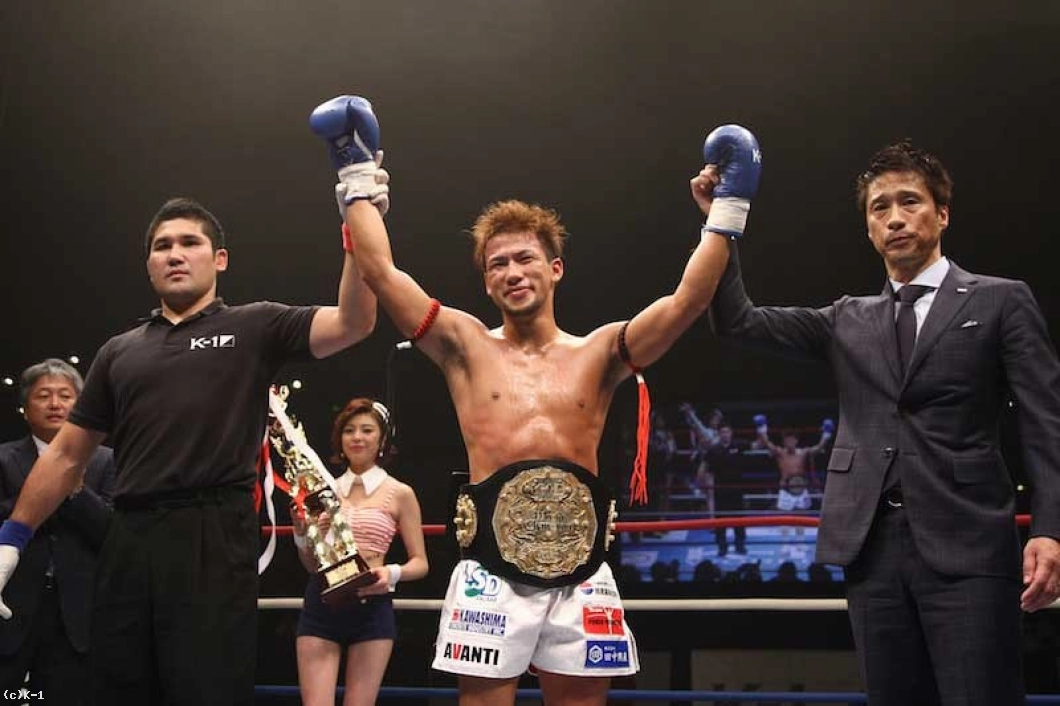 「(王者になって)何とも言えないです。本当に嬉しいです。(ダウンを奪ったヒザ蹴りは狙っていた?)狙っていないです。ヒザは入り辛いなと思っていましたが、2R以降、功也が倒しに来たことでチャンスが出来ました。(怪我を抱えていたようだが?)タイ合宿の一週間目に、誰よりもキツイことをやろうと、オーバーワークで疲れても気にせず追い込んでいたら、ミドルの連打で体の方が切れちゃいました。右足ふくらはぎを肉離れになり、急いで日本に帰って、素晴らしい先生に治療してもらいました。(棄権も考えなかった?)一月の大会からまた(功也と)やろうと思ってやってきて、あれだけ僕から喧嘩売ってきて棄権して逃げることは情けなくて出来ませんでした。(功也選手は3度目対戦を望んでいたが?)受けて立ちますよ。そこはチャンピオンとしてしっかりと」
