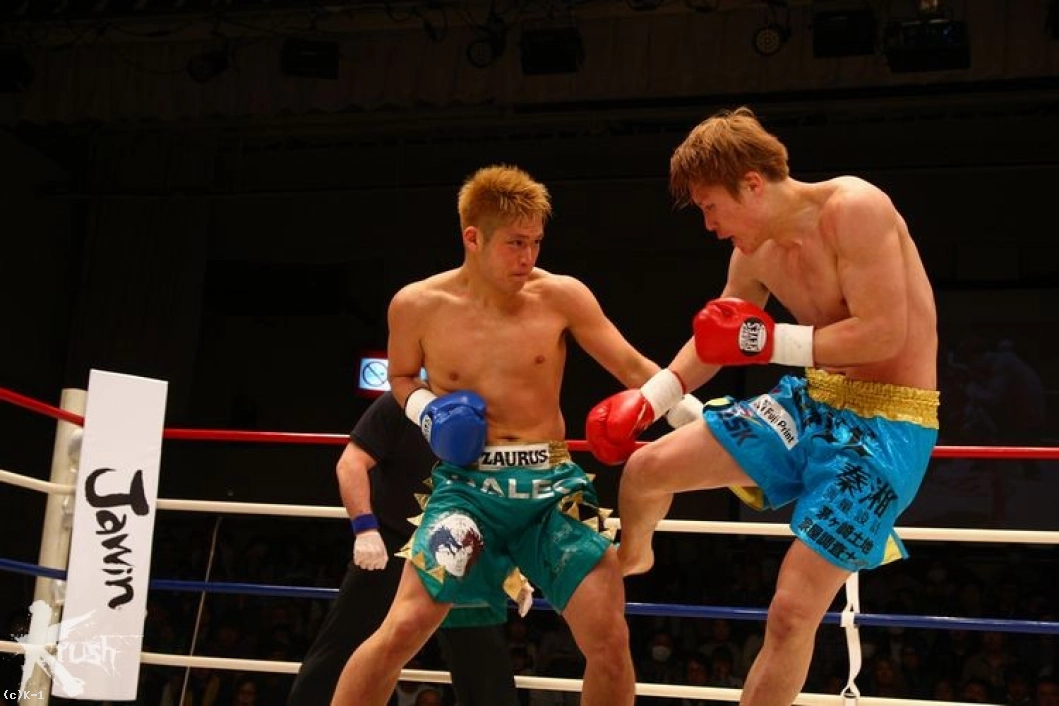 1R、ジャブを突いて突進する阿佐美。K-Jeeは左フックとヒザ蹴りで迎え撃つ。互いに近い距離で打ち合う展開から、阿佐美が右ストレート・ヒザ蹴りを当てて前に出る。このヒザ蹴りでK-Jeeは鼻から出血。2R開始直後にドクターストップがかかり、阿佐美が最後の試合でキャリア初のKO勝利を収めた。