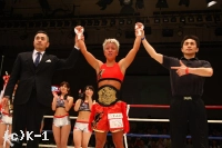 (今後の目標は?)このまま無敗で駆けあがってKrushを盛り上げて。そうすれば女子の格闘技も盛り上がると思うので、その上に立って引っ張っていきたいと思います。(防衛戦はどんな相手と戦いたい?)強い相手とやりたいです。KANAが負けるんじゃないか?と思われる相手とやりたいです。(ファンへのメッセージは?)本当にたくさんの応援で勝つことが出来て、チャンピオンになれました。これからまだまだ強くなるので応援よろしくお願いします」