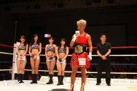 「紅絹選手強かったですね。3Rにハイキックでダウンを取れたのは持ってるなと思いました。それまでは相手の方が手数が多くて、結構押されているなって思いましたね。(ハイキックは狙っていた?)今日のイメージはハイキックで倒すことで、すごく練習していたんで、倒せはしなかったですけど、自然に出たハイキックでダウンを取れたのはよかったです。ただ倒してチャンピオンになりたかったので、まだまだ力不足なんでもっと練習して強くなります。