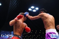 3R、意を決したように前へ出た和氣は力を込めた左フックを振るうが、松下が左ヒザをボディに突き刺し、和氣をロープまで下がらせる。だが和氣もボディへのヒザを返し、顔面狙いの跳びヒザ、さらに続いてストレートを飛ばして反撃する。ラウンド最後は松下が左右ストレート、和氣が左右フックで両者打ち合う中終了となる。