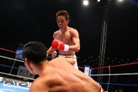 2R、ダウンを奪われた山崎は思い切り振りかぶってのパンチ、バックブローと前に出るが、久保はよく見て当てさせない。頭を振って山崎の左右ストレートをかわし、客席からどよめきが起きる。ダウンの挽回に懸命な山崎だが、久保をとらえられない。