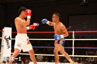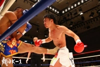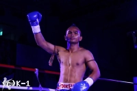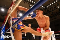 「(試合の感想は?)みなさん、ご存知だと思うんですが、対戦相手が変わることになって。正直、コンディションにかなり差があったと思うので、勝ってあたりまえの試合だったとは思います。(対戦相手の印象は?)相手選手は昨日試合ということを言われたわけですけど、凄くふだんから練習しているのがわかるくらい、蹴りも重くて。それでも冷静に対処できていたとは思います。(今後の目標は?)9月か10月に寺戸選手の防衛戦は決まっちゃったみたいなんですけど、それに勝ったほうが俺に挑戦してこいよって、いま言いたいです。で、11月にK-1のトーナメントがあるので、それを見据えて試合もしていたので、出られればいいなと思います」