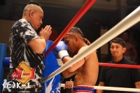 1R、緊急出場となったジョッキーレックだが、威力ある右ローを石田に叩き込み場内をどよめかせる。しかし石田も引かず、ジョッキーレックをロープに詰めて左ボディフックで襲い、顔へのヒザを突き上げる。これで感覚と距離感を掴んだか、石田は右ヒザを再びジョッキーレックの顔面に決め、これでダウンを奪取。ダメージのあるジョッキーレックを逃がさず、石田は右フック、右ストレートとダウンを畳み掛け、対戦相手が急遽変わるアクシデントをものともせず初回ノックアウトで勝利した。