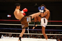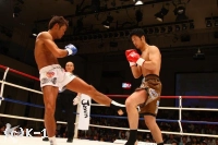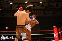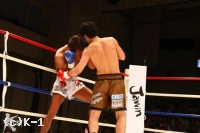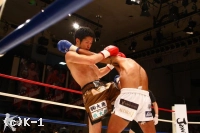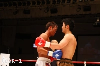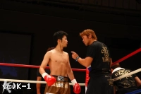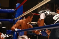 3R、右ストレートと左ボディフックを青津が打ち込むが、高橋は両手を広げ「大丈夫だ」というアピールを見せる。高橋は右ロー、左インローをヒットさせ、これに青津がややグラつくと前進を強め、右ローを追加する。ラウンド終盤は高橋が青津を押していく展開となり、ローとヒザを浴びせる。