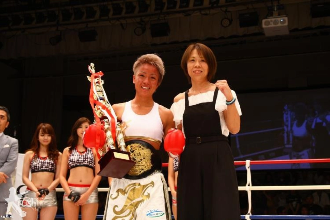 「KOできなくてつまらない試合をしてしまいすみませんでした。でも、みんなの応援のおかげで接戦でしたが勝つことができました。たくさん応援してくれたみんな、ありがとうございました。自分の実力はまだまだですが、これまで盛り上がらなかった女子格闘技をもっともっと強くなって引っ張っていきます。まだまだ強くなるので応援お願いします」