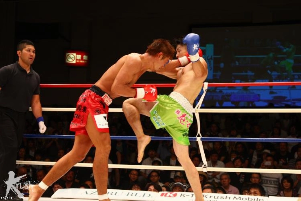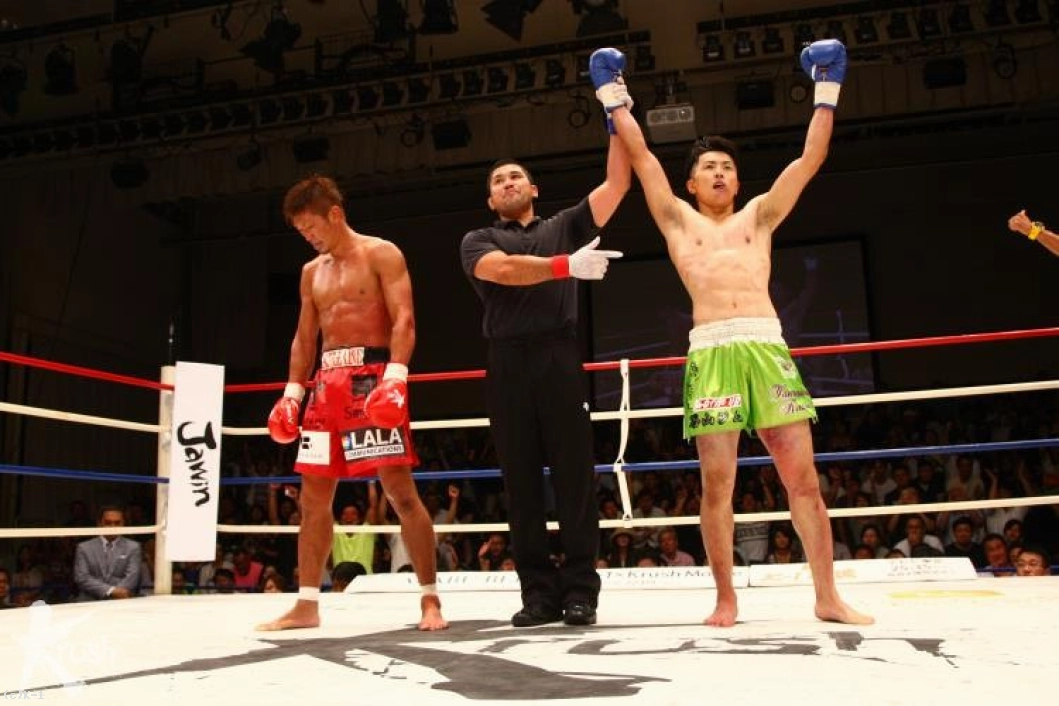「(約3年ぶりのKrushだったが?)お客さんも満杯で、演出も凄く凝っていて、気持ちよかったですね。(相手もキックが得意なファイターだったが、やりづらさはあった?)いえ。僕は蹴りvs蹴りも得意なので、やりづらさはまったくなかったです。ただ、ラウンド後半、相手がセコンドに印象が悪いのを指摘されたのか、けっこう前に出てこられたのは、ちょっと疲れましたね。(次の目標は?)K-1にぜひ、出撃させていただきたいと思っています。来年、67.5もできますし、僕は65.0でも落ちますので、ぜひチャンスがをいただきたいな、と。あと、目標としているKrush-67kg級のタイトルにも、ぜひ挑戦させていただきたいです」