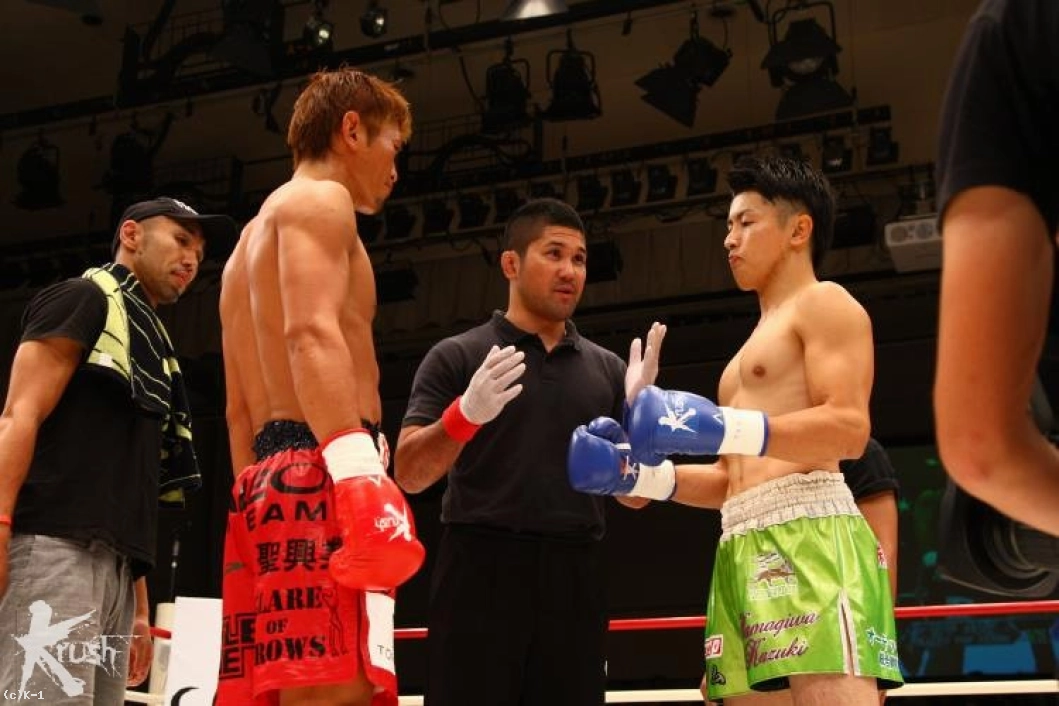 判定は10-9(牧平)、10-9(山際)、10-9(山際)の2-1で山際。計4Rに及んだタフな蹴り合いを制しタイトル戦線にアピールした。