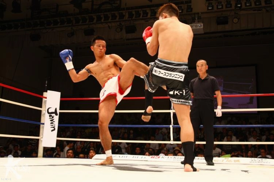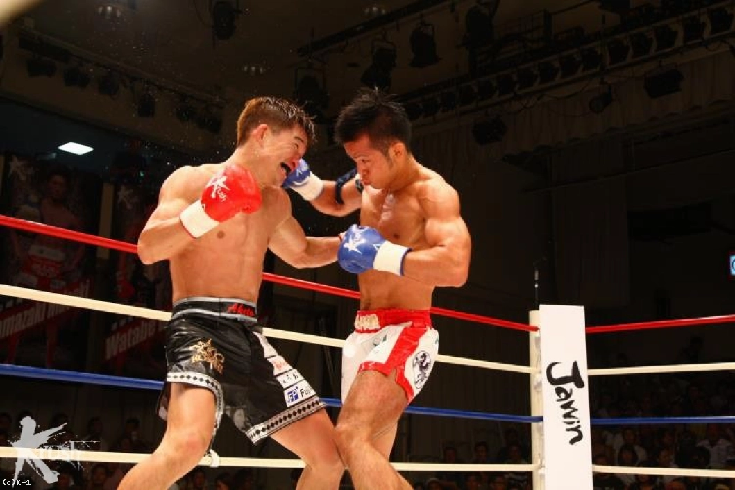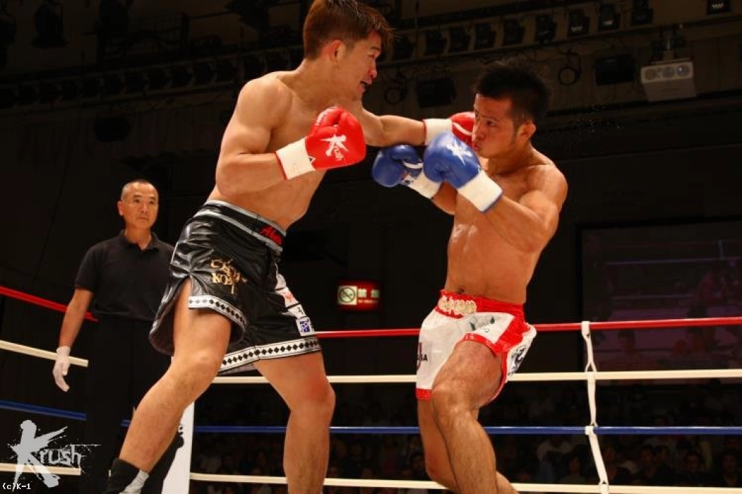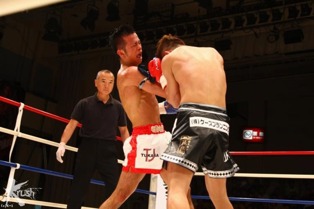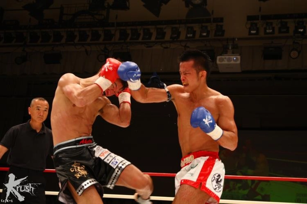 ジャブ、左フックからの右ストレートとパワフルなパンチで打って出る明戸。しかし郷州はこれをしっかりガードし、逆にコーナーまで明戸を押して出るとボディへのヒザを交えた連打で対抗する。さらに前に出んとする郷州だが、ここで明戸は左フックをタイミングよく見舞い郷州をフラつかせる。しかし郷州はすぐ体勢を立て直して前進ファイトを展開する。手数で上回る郷州。