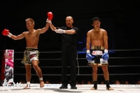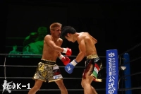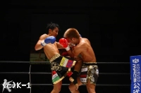 EXR、小澤はボディストレート、ボディへのヒザを打ち込むが、大岩もこれにヒザを返す。前に出る大岩を小澤はサイドにスルリと足さばきでかわす。しかし大岩も右ヒザをボディに突き刺して効かせ、そこから前に出る。右ストレート、右フックで来る大岩を小澤は横にかわすが足がフラついている。右フック、右アッパーを振るう小澤だが大岩は変わらず前に来る。鼻血が見られる小澤は劣勢に映ったが左フックを打ち込むと大岩をフラつかせ、さらに小澤は跳びヒザも見舞って試合を終える。