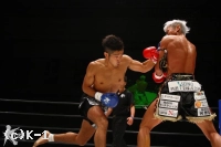 2R、場内は「泰斗」コール。東本の左ボディストレートに対し、泰斗は右インローを返す。東本はここで再びボディストレートかと思いきや、今度はストレートを顔面に送り、これで泰斗を倒してダウンを奪う。東本は慌てて倒しに行くことはなく、まずボディに前蹴りを入れ、続いて蹴りのフェイントから左スイングフックを決めこれで2度目のダウンを奪う。そして最後は左ヒザから左の打ち下ろしストレート。泰斗を三度マットに沈めてノックアウトした。