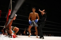 オーソドックスの泰斗に対し、東本はサウスポーで向き合う。東本は左ミドル、左ロー、泰斗は右ローを蹴り合ってお互いの出方を探り合う。両者よく蹴りが走っており、ここはどちらもよく見て入っていかずに終了を終える。