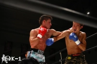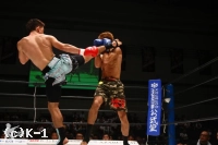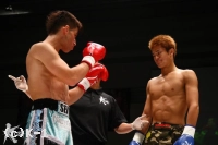 2R、依然フットワークの軽快な上田は山下をロープに詰めて右ストレートと左フックを回転させる。クリンチして逃れた山下だが、上田は再び前に出て右ストレートと左フックの連打を再度浴びせる。距離を取って左ミドル、左ストレートを返す山下だが、上田は呼吸を整えると再び右ストレートと左フックでラッシュ。ラウンド後半は山下がリーチを活かした左ミドル、左ストレートで上田を追うが、上田はフットワークでこれをかわす。