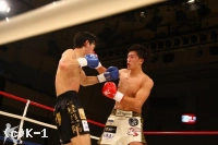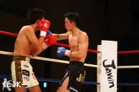 ボディへのヒザで入ってくる松野を佐野は押し戻し、自身もボディへのヒザ、顔へのワンツーを飛ばし、松野を追って3Rを終える。