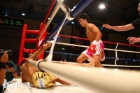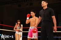 「(試合の感想は?)昨日の減量が終わってから、うまく調整をして、会場に来てからもいいアップができたし、試合ではちゃんと相手の動きが見えたと思います。(相手は初参戦だったが、不安はなかったか?)映像を見ていなかったので、やってみないとわからないというのはありましたね。でも、自分の試合ができました。(今後の目標は?)K-1で-55kgの日本トーナメントがあれば、それを目指し勝ち続けていきたいと思います」