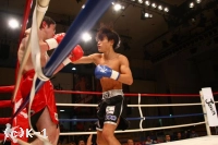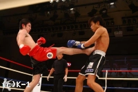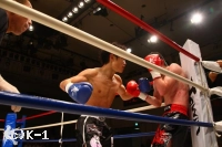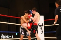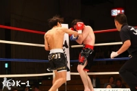 2R、変わらず手数では笠見が上回るが、ラッセルはブロックでこのパンチを弾きながら前に出て右ローキック。笠見はワンツー、右ストレート、右アッパーと振るうがラッセルは前に来る。しかし笠見が左フック、右アッパー、右ミドルと攻撃をまとめる場面ではラッセルも後退を余儀なくされる。