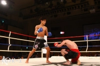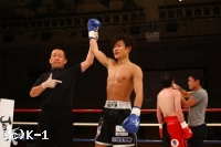 3R、ローでラッセルをけん制した笠見は、ラッセルが前に来たところで右クロスをクリーンヒット。これでラッセルは腰を落としてダウンを喫する。立ち上がったラッセルだがガードを固めて手が出ず、笠見がパンチから右ミドルに繋げてスタンディングダウンを奪取。最後も笠見が左フック、右ストレートとラッセルをコーナーに詰めて攻撃を浴びせ、スタンディングダウンで最終回のKO決着となった。