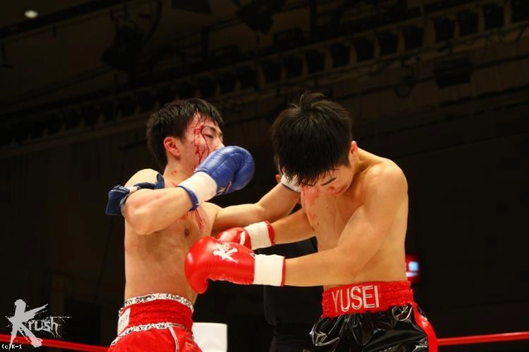 3R、優勢の小只は自信を持って前に出る。桜井も下がらず応戦し、右フックを返すが、ここで桜井の頭がバッティングとなり、小只は右こめかみ周辺から出血。しかし小只はひるまず、右フックと左ストレートの連打を見舞って依然攻勢。