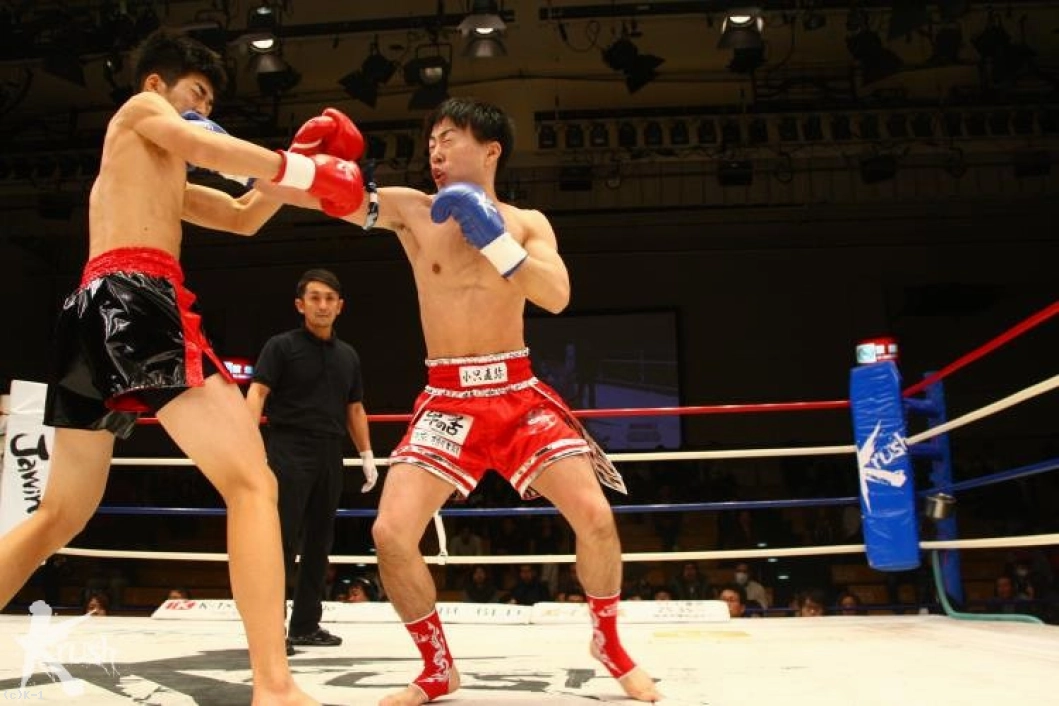 2Rも小只は身長・リーチ差を苦にせず右のリードから左ストレートで切り込む。桜井も左ストレートを返すが、精度と勢いは小只が勝る。小只は左ストレート、左ミドル、左ストレートと命中率を上げ、桜井は鼻血が見られる。