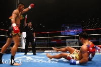 ダメージが深い様子ながら何とか立ち上がったHIROYAであったが、ゲーオはさらに左ストレートを連発して向かい、これで再びHIROYAを倒してノックアウトした。