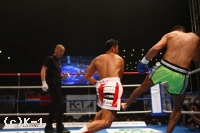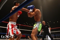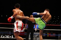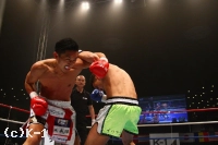 EXR、山崎は左フック、右ストレートとパンチに力を込めるが、ブライドはガードで弾き、鋭い左ミドル、左インローで応戦する。パンチで行く山崎に、ブライドは蹴りで対抗。山崎の右フックがとらえるが、ブライドは顔を受け流して威力を殺しているか。