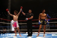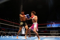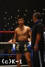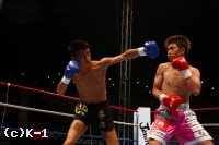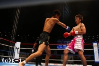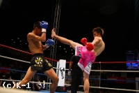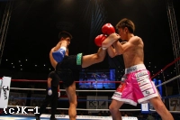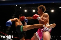 2R、朝久はこのラウンドも前に出て西京にプレッシャーを与えんとするが、西京はパンチとミドル、そして跳びヒザを織り交ぜ、ここから脱しようとする。だが、朝久は被弾があってもプレッシャーを緩めず、逆にロー、ミドル、ストレートとヒットの精度を上げていく。だが、西京も左ストレートを当て朝久を後退させる。