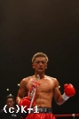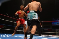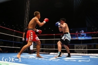2R、今度は和氣が逆に出ていていくが、上田はフットワークを使って和氣のペースに持ち込ませない。両者1Rより攻撃の交錯が多くなるが、しかしまだ蹴りの距離でパンチでの打ち合いとはならない。