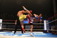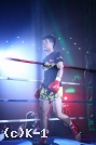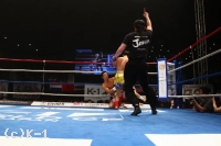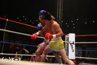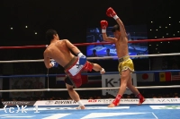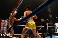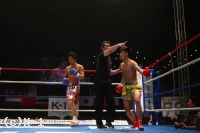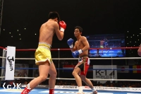 2R、小宮山はダウンを奪い返さんと前に出てロー、ミドルに力を込める。これに対しユンは左フック、右ストレートとパンチで応戦。小宮山は後ろ回し蹴りも飛ばすがユンをとらえられない。