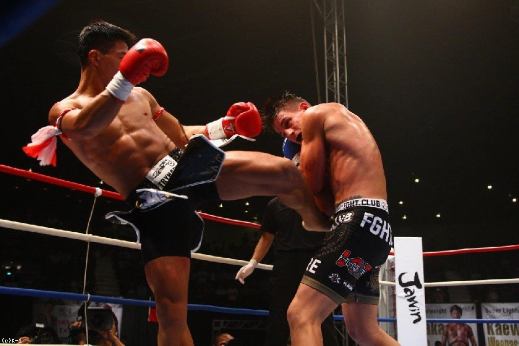 2R、顔のブロックが固いエルナンデスに、ならばと大雅は左ボディフックから切り崩しに掛かる。しかしエルナンデスはタフさと堅固なディフェンスを見せ、右ストレート、左フックと大雅を襲う。前に前に出るエルナンデス。大雅がミドルを入れてもすぐに右ローをリターンし、右ハイも飛ばしてくる。