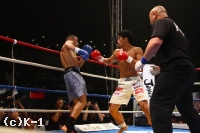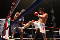 ベノーイは変わらずスイッチを見せ、オーソドックスからの右フック、右ストレートを功也にヒット。左ストレート、ボディへのヒザと入れる功也だがタフなベノーイは闘志を落とさず前に出てくる。しかし、そこへ功也は顔面前蹴りをヒット。だが、ベノーイは一瞬止まってもすぐに前進を再開しまたフックを功也に振るってくる。