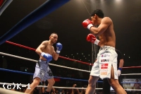 ラウンド終盤、功也はベノーイをロープに詰めて左ストレートと右フックを叩き込む。ベノーイをロープ際に追い詰める場面が目立つ功也。
