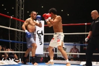 1R、両者は互いにサウスポーに構えるが、ベノーイは時おりオーソドックスにもスイッチする。ロープを背にリングを回るベノーイを功也は右ジャブと左ストレートを放ちつつ、ノッシノッシと追っていく。