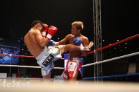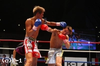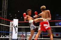 しかしラウンド中盤、芦澤は左右のパンチだけにならず、これに左ミドル、左ヒザを交え伊藤を下がらせ押していく。だが、伊藤も踏ん張って反撃に左フック、右ストレート、前蹴りを返し、再び前に出る。そして左フック、右ストレートで芦澤をとらえる。だが芦澤も左フック、左ミドルで前に出返す。