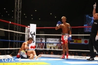 ラウンド終盤、芦澤はやや気が抜けたか、伊藤が右クロスを打ち込みダウンを奪う。