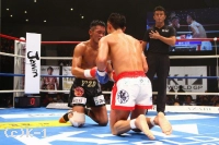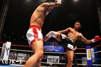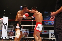 ラウンド終盤、郷州は高橋の右ローに右クロスをカウンターで合わせるが、高橋はこの窮地をクリンチしてしのぐ。