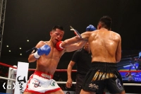 3R、両者互いに前へ出て、近距離でパンチとヒザの打ち合いに。郷州は右ショートアッパーの連打、右フック、右ハイと手数の多さが目立ってくる。