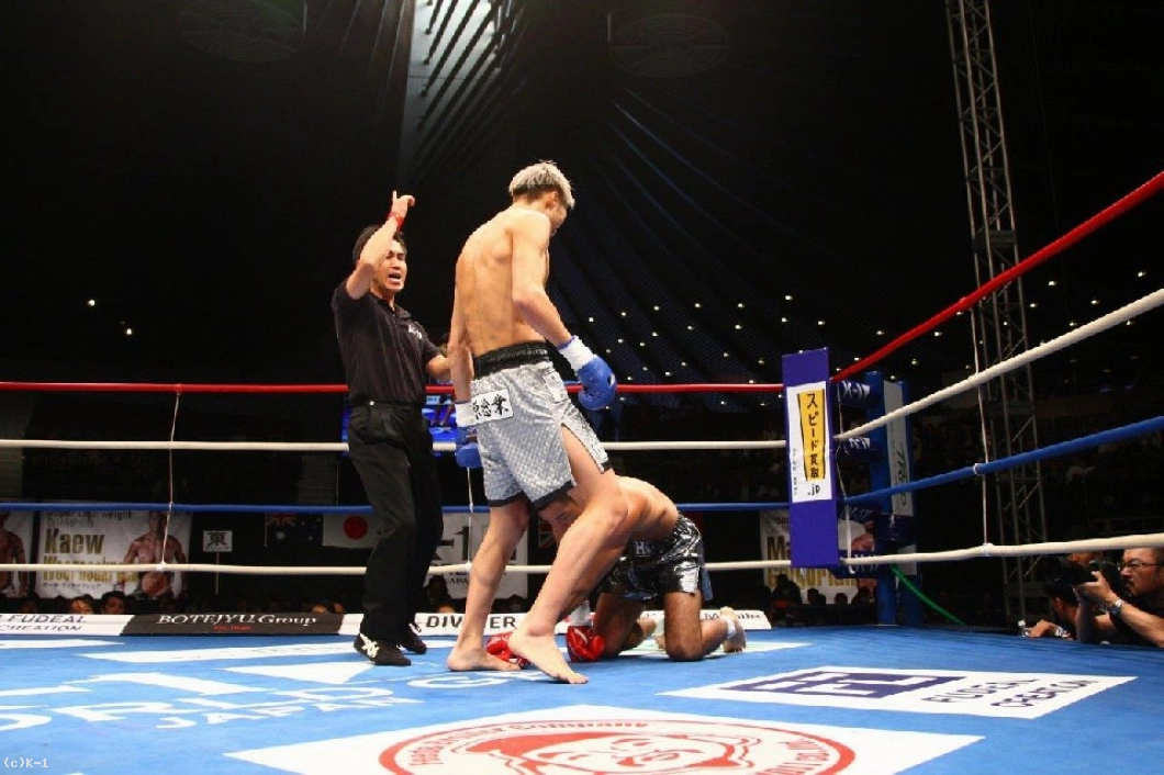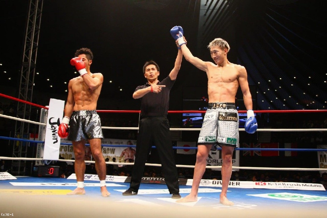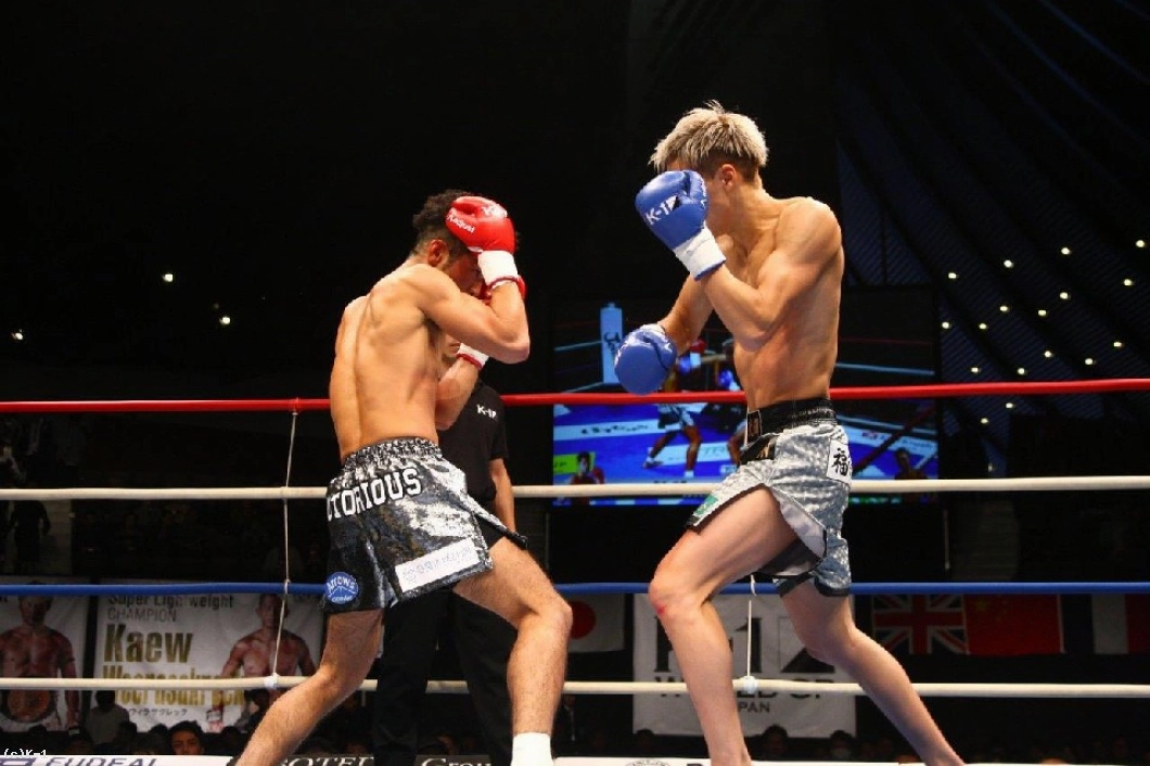 判定は30-26、30-25、30-25の3-0で瑠輝也。長身から打ち込むパンチで2度のダウンを奪い勝利した。