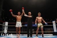 3R、武居は左ハイを入れ、左ストレート、右アッパー、左ボディストレートと久保を倒しに掛かる。そして武居の右フックに足を滑らせる久保だが、これはスリップでダウンとならず。目周辺に腫れの目立つ久保だが、武居の右フックが度々とらえても倒れない。意地と気持ちを見せる久保に、武居は右フック、ミドル、ボディへのヒザと最後まで攻め優勢で終える